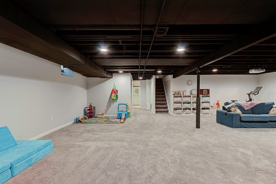 We were fortunate to transform a blank slate in this nearly new home into a striking, functional lower level. The basement ceiling, sprayed black, sets an industrial tone that carries throughout the space. The updated bathroom blends modern design with bold contrast, black vanity and accents offset crisp white tile and countertops, creating a polished, urban aesthetic. Every detail was considered, from sleek fixtures to durable finishes that stand up to everyday use. The surrounding basement area balances style and comfort, making it perfect for entertaining, relaxing, or hosting overnight guests. This remodel delivers a cohesive, contemporary vibe with lasting appeal.