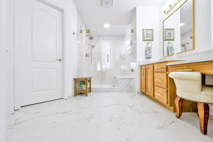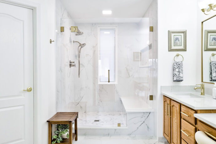 This luxury bathroom remodel in Birmingham delivers a refined, high-end space designed with both elegance and performance in mind. Completed by Maxwell Building Services, this project showcases a true white-glove remodeling approach, combining premium materials, thoughtful layout, and expert craftsmanship to create a bathroom built for long-term durability and daily comfort.